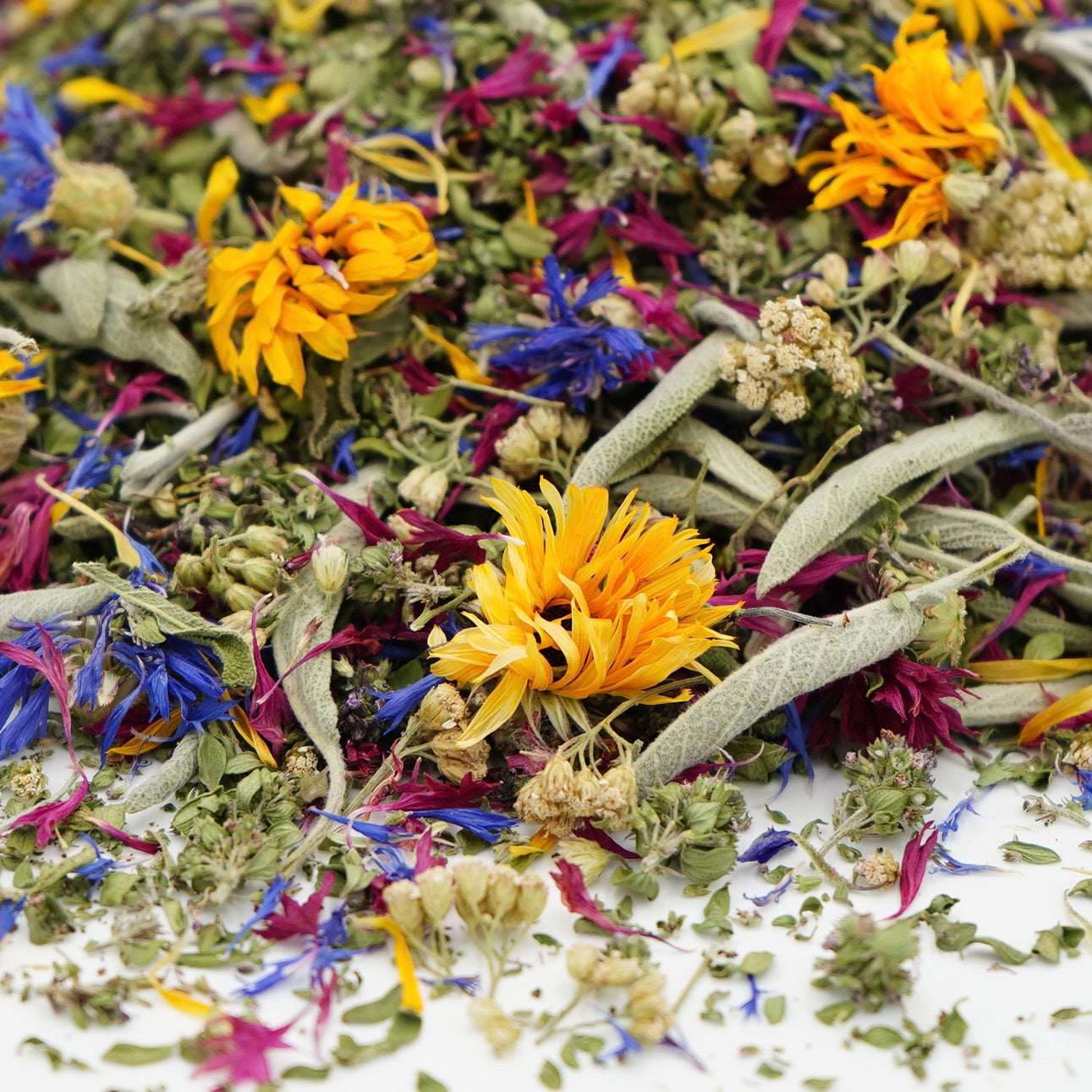 Le souci apporte une douceur florale délicate, enrichie de subtiles touches terreuses, et diffuse un arôme agréable qui évoque la fraîcheur des pétales baignés de soleil. La sauge, avec son arôme aromatique et camphré, apporte une fraîcheur légèrement amère qui réveille les sens. La menthe poivrée offre une touche de fraîcheur vivifiante, tandis que l’achillée millefeuille, avec ses nuances florales et amères, apporte une subtile profondeur à chaque gorgée. L’ortie, discrète en goût, complète harmonieusement ce mélange.